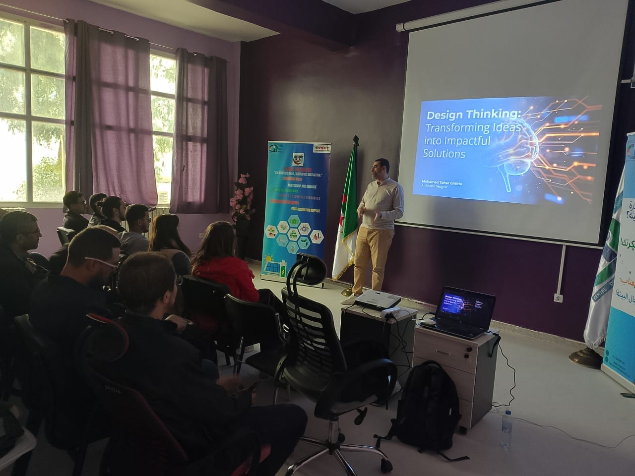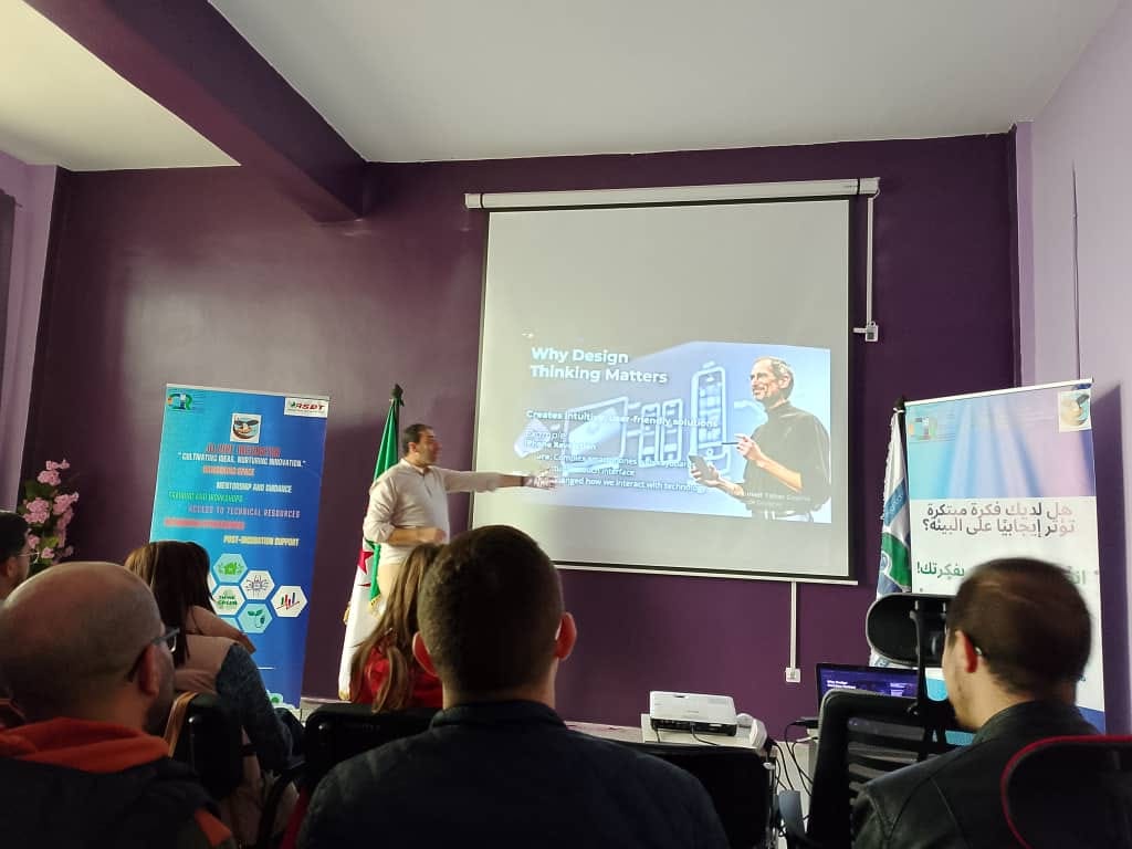 L'incubateur du CRE - Le Jujube - a accueilli aujourd'hui, une formation enrichissante sur le Design Thinking, animée par M. Mohamed Tahar Grairia. Coach et formateur pour les startups, architecte visionnaire, expert en modélisation 3D et passionné par les technologies émergentes, M. Grairia a partagé son expertise pour aider les participants (porteurs de projets de startups, chercheurs et staff technique) à transformer leurs idées en solutions innovantes et concrètes.