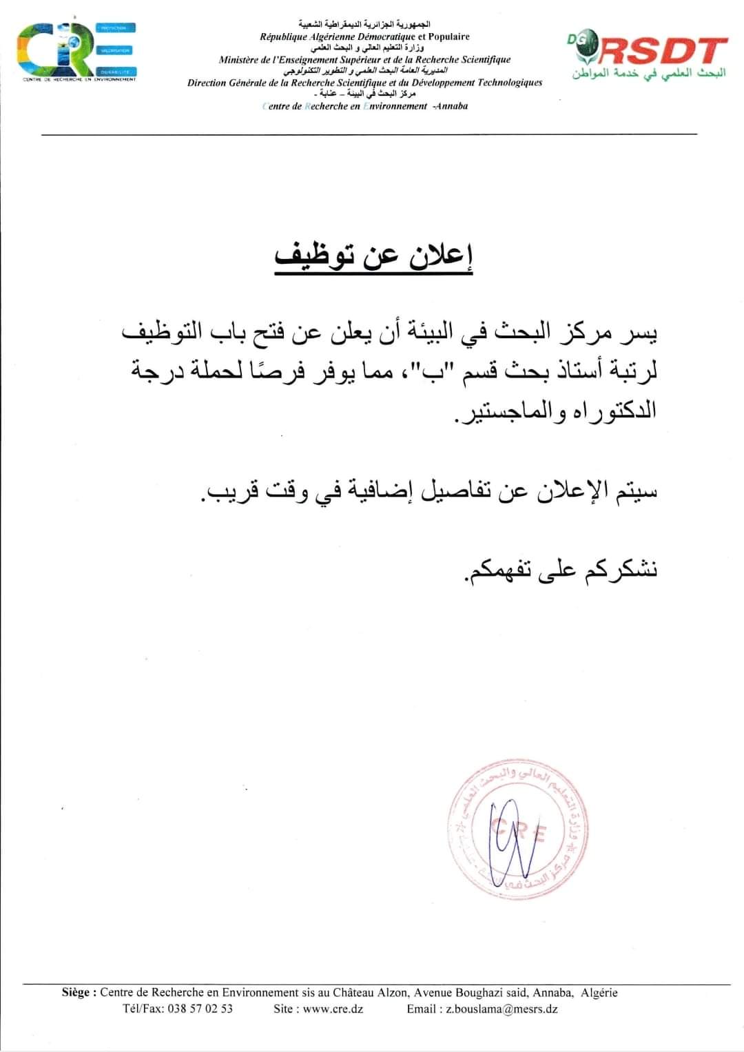 - Centre de Recherche scientifique et technique sur les regions arides-Crstra Biskra